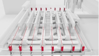 Las fotocélulas de barrera también demuestran las ventajas de la innovadora fuente de luz. Los sensores con el LED Power PinPoint proporcionan una detección extremadamente fiable incluso en espacios reducidos, como por ejemplo las celdas de una batería en una estación de carga.