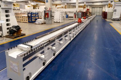 Dimensiones impresionantes no solo para carros deslizantes de 8000 mm; en la foto podemos ver los 42 500 mm de la carrera total del eje X.