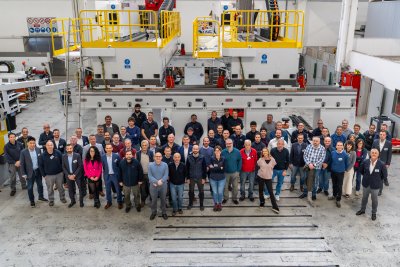 El equipo de Mecof posa orgulloso delante de la Megamill destinada a China.