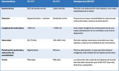 Tabla 1. Ventajas de la SS-OCT frente a la SD-OCT.